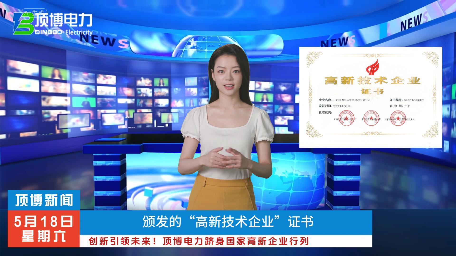 - 「視頻」高新科技耀眼登場!頂博電力榮膺高 國家高新技術企業(yè)的認定工作是由國家科技部、財政部和稅務總局聯(lián)合進行的。頂博電力將不斷引進先進的工藝技
